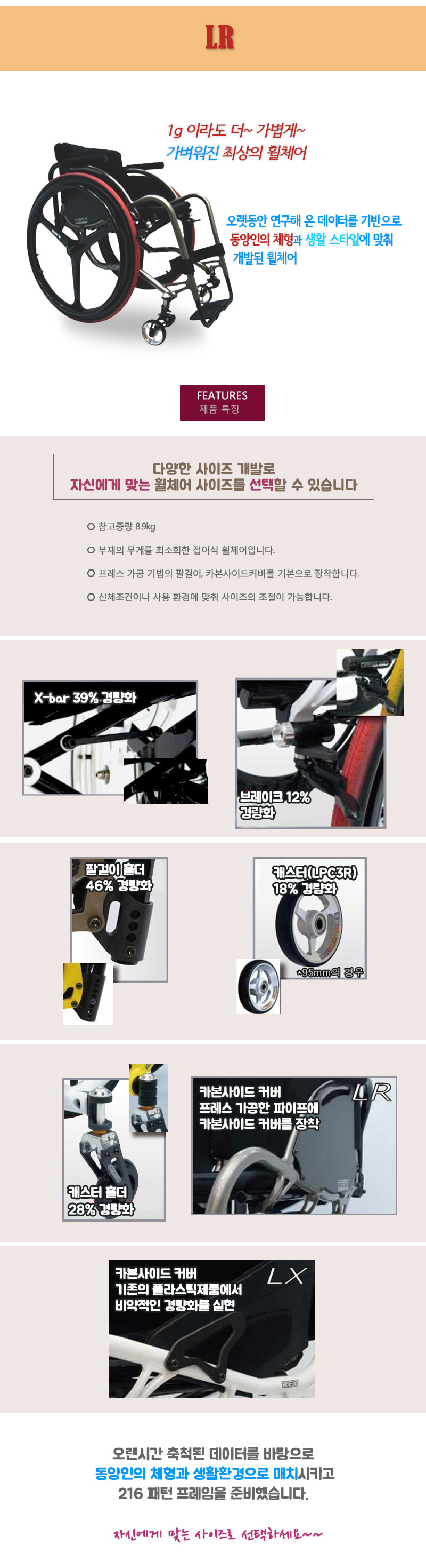 -고퀄리티의 경량화 휠체어로 기존 OX 제품보다 가볍습니다.