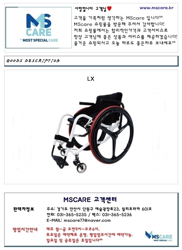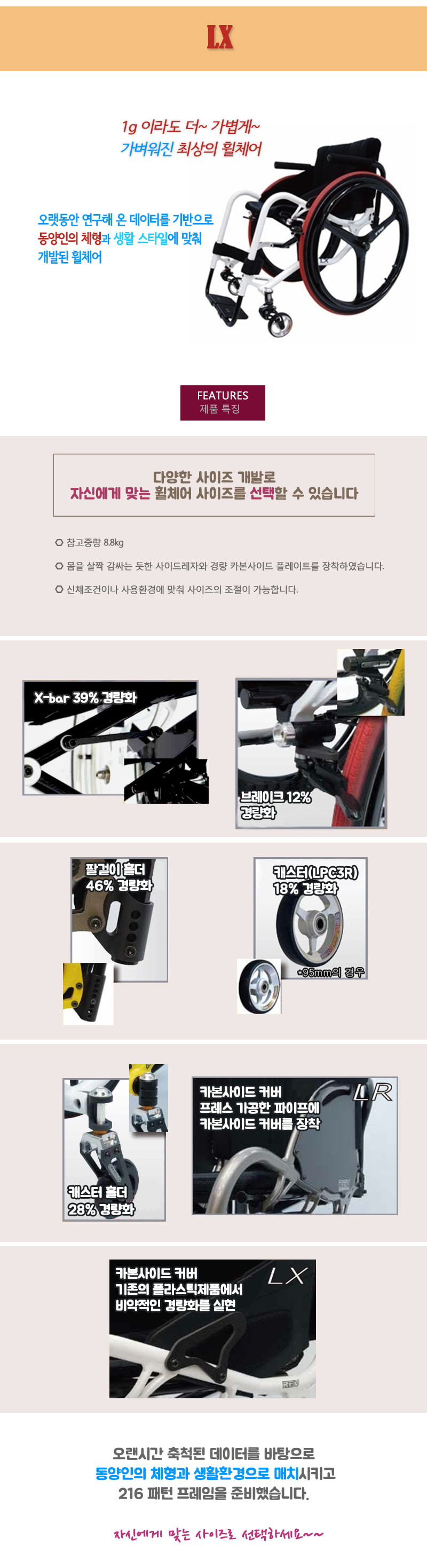 -고퀄리티의 경량화 휠체어로 기존 OX 제품보다 가볍습니다.