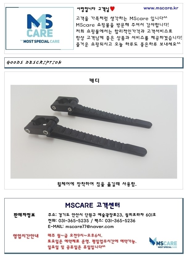 -휠체어에 장착하여 무거운짐이나 부피가 큰 소지품을 옮기는데 사용.