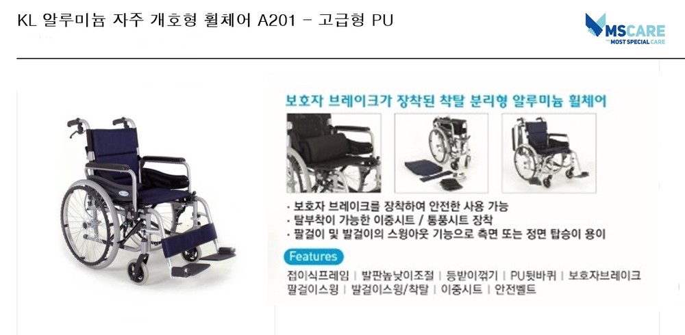 알루미늄 자주 개호형 휠체어 KL A 201 휠체어