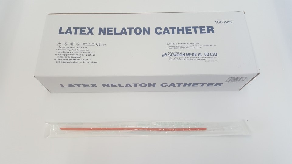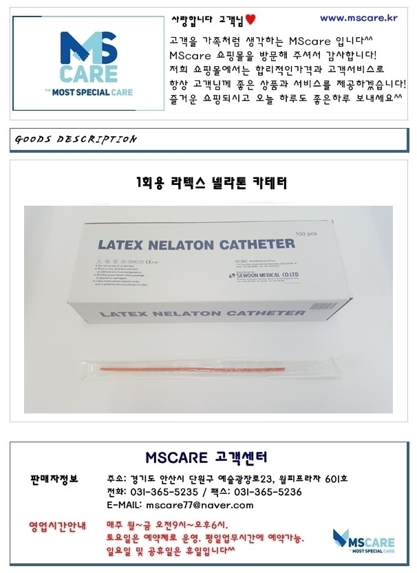 -자가도뇨시 사용하는 제품으로써 라텍스 재질로 제작된 1회용 넬라톤 카테터 입니다.