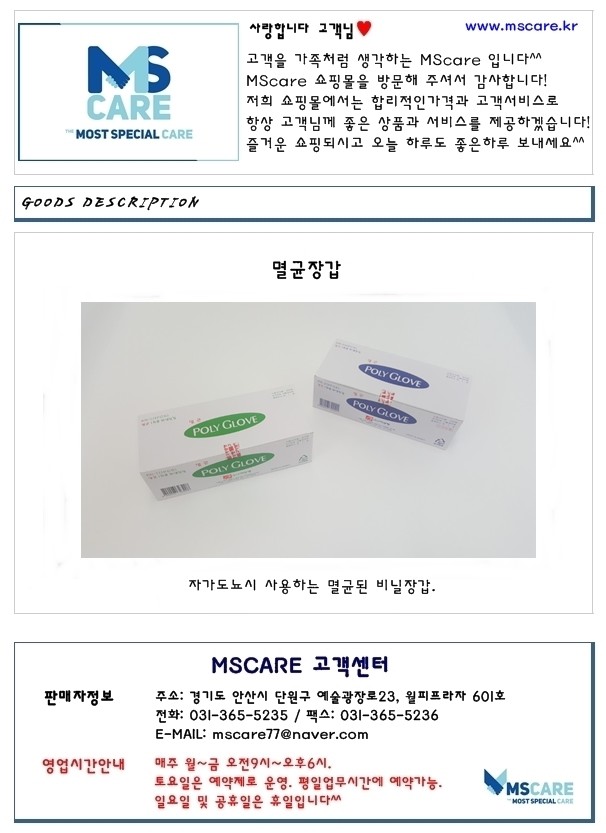 -멸균장갑2P (2개씩 포장, 100매) - 8,500원