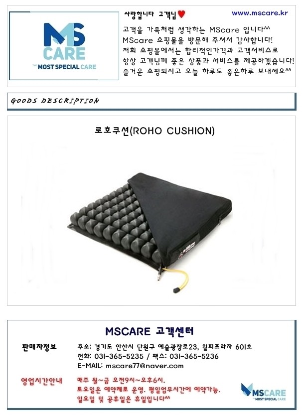 미국 로호 프로덕트(ROHO PRODUCTS INC)사 의 로호쿠션(ROHO CUSHION)은