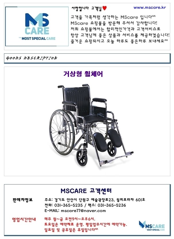 다리 깁스 환자가 이용하기 편리한 휠체어